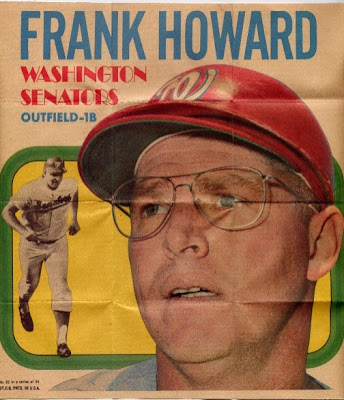 During the 1960s and 1970s Topps seemed to love oddball inserts much like they love to overdo today. One of those inserts for 1970 was a 24 set of "mini" posters that measure 8-11/16" x 9-5/8" and were inserted in the regular wax packs. Since they are just thin newsprint thickness paper and folded to fit the packs they tend to tear at the folds. So far I am fortunate in the two I have with little or no rips, my standard two Washington Franks, Howard and Robinson which are featured in this post. Mr. Robinson of course represents the Orioles. It seems the only other Senators past, present or future in this 24 "poster" set were Denny McLain (Tigers), and Don Mincher (Pilots).