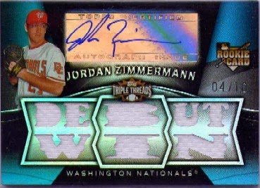 2009 Topps Triple Threads GU Auto Sapphire 130 Jordan Zimmermann RC Nationals #d 04/10